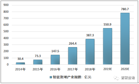 傳統的家庭照明裝修聚焦于視覺元素和節能環保,隨著消費升級,通過提升照明質量來保護健康,以氛圍化、場景化的視覺體驗滿足審美成為新的需求,而智能照明借助物聯網以及人工智能技術,可以實現對照明的“私人訂制”,所以正在迅速發展,有數據顯示,2017年我國智能照明產業規模為264.4億元,到2018年增長至387.3億元,預計2020年產業規模將達到780.7億元。